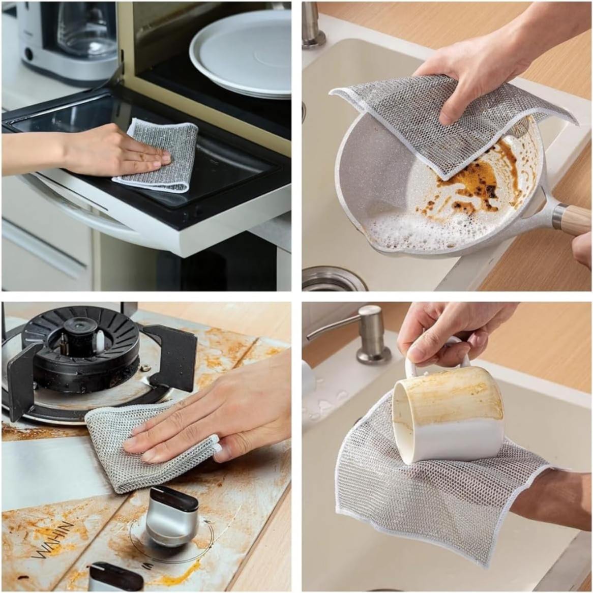 These multipurpose, dishwashing rags, made from high-quality fabric and silver wire mesh, are perfect for cleaning stubborn stains without damaging surfaces. With strong water absorption, they can be used both wet and dry, effectively foaming up and locking in moisture while easily removing oil and grime. Measuring 7.87 x 7.87 inches, these durable rags can be reused repeatedly, making them ideal for cleaning kitchen utensils, cooktops, plates, cups, pots, counters, and even bathtubs. 🧽🍽️💧